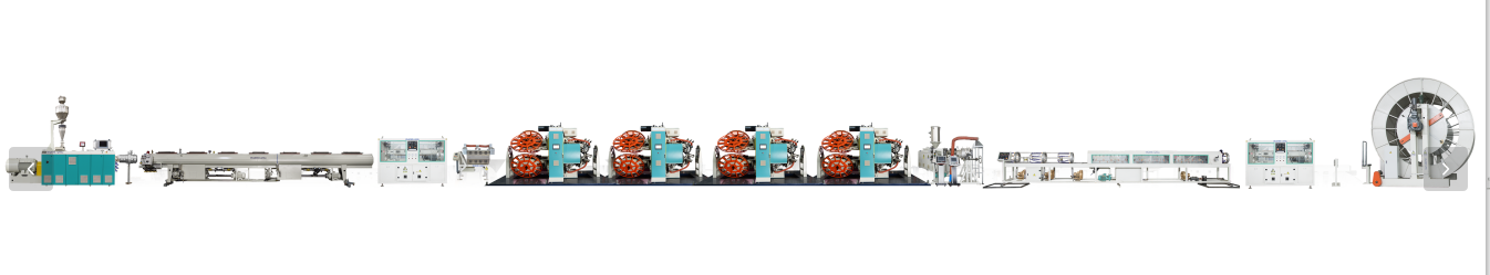 Reinforced Thermoplastic Pipe (RTP) Extrusion Line, na espesyal na ginagamit para sa produksyon ng reinforced thermoplastic non-metallic wire reinforced flexible composite pipe, na nagpakilala ng pinakabagong teknolohiya sa United States. Ang high-end na G-type ay gumagamit ng mga pamantayan ng EU, at ang high-end na U-type sa North America ay gumagamit ng mga pamantayan ng North American. Ang buong serye ay na-configure ayon sa GRAEWE FANGLI brand.